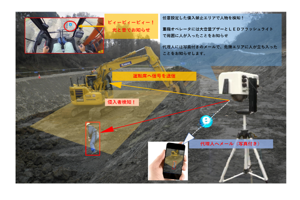 画像解析システム(人物検知ソフト)を搭載し、画角内に侵入検知エリアを設定可能